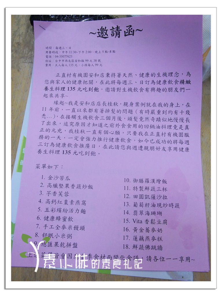 菜單一(星期三、日) 99元吃到飽 正直村有機園 蔬食館 台中素食蔬食食記.jpg
