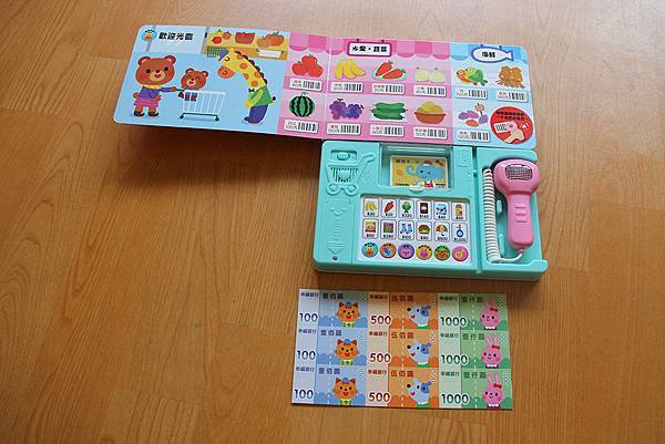 也能學著超市用語、歡迎光臨、多少錢、謝謝、請幫我結帳、歡迎下次再買…等