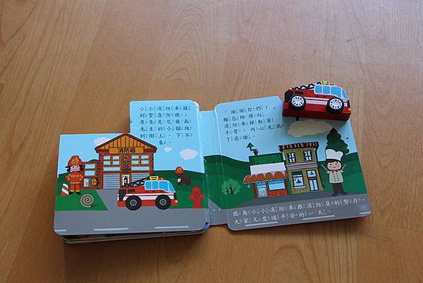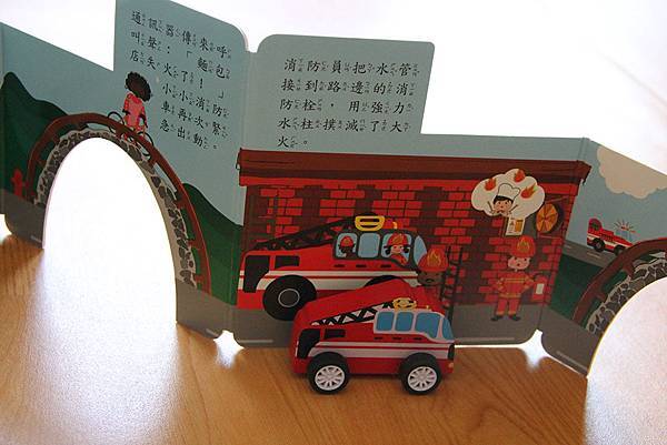 很可愛,書竟然附了木頭消防車