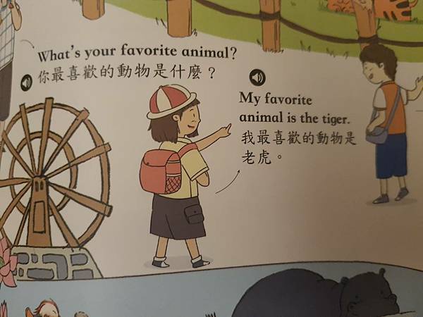 你最喜歡的動物是什麼? 我最喜歡的是老虎。
