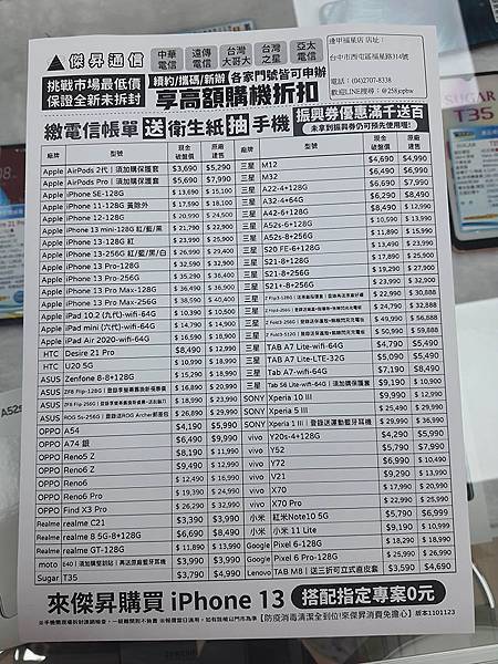 傑昇通信特點是,在門口就能看到價錢一目了然。