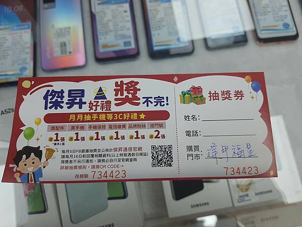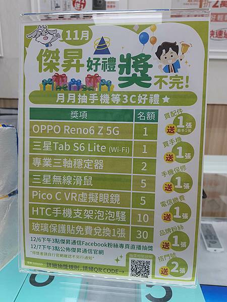 傑昇有個特點,是每月都會抽手機等3c好禮,